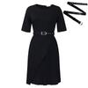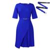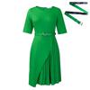 Women's solid color fashion temperament five-quarter sleeve high waist pleated high waist dress