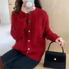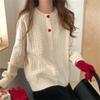 Autumn and Winter Women's Sweater Round Neck Love Button Fried Dough Twists Knitted Cardigan
