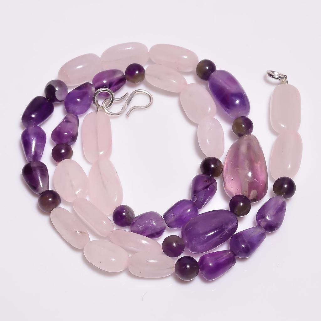 Natural Rose Quartz Amethyst Gemstone Beads Necklace 6-17 mm 18" UB-8175 UB-8175