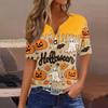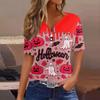 Women's T Shirt Halloween Print Button Short Sleeve Daily Weekend Fashion Basic V- Neck Regular Top