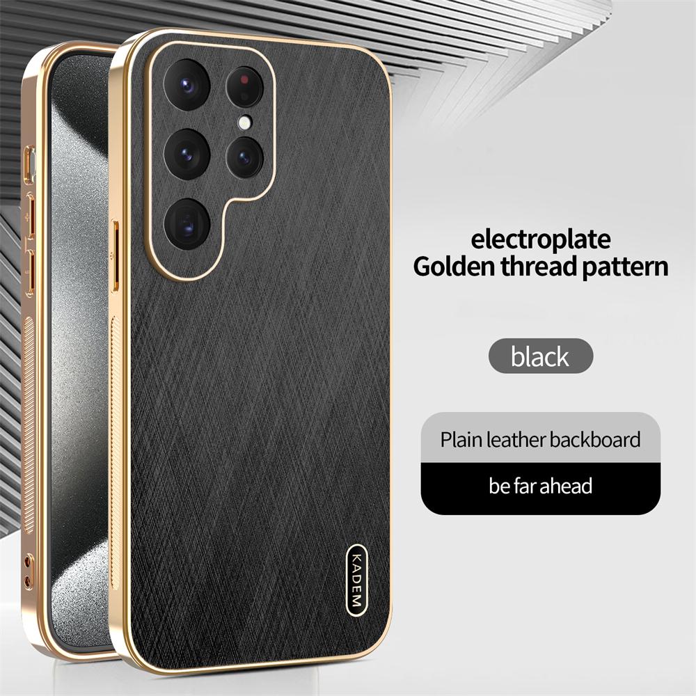 Étui de téléphone plaqué or avec texture cuir de soie pour Samsung Galaxy A55 A54 A53 A52 A35 A16 A06 A34 A33 5G, coque rigide électroplaquée