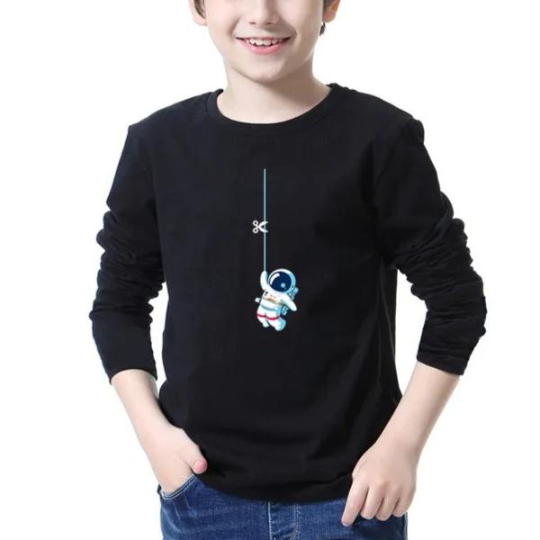 T-shirts à manches longues pour enfants garçons à col rond avec motif astronaute imprimé en 3D, tendance et décontracté pour le printemps et l'automne