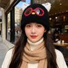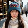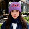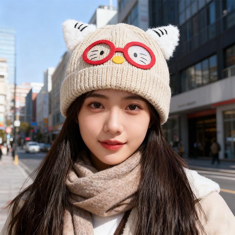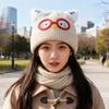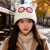 New Cute Glasses Cat Ears Hat for Women Autumn and Winter Warm Ear Protection Knitted Hat Showing Face Small Woolen Cold Hat