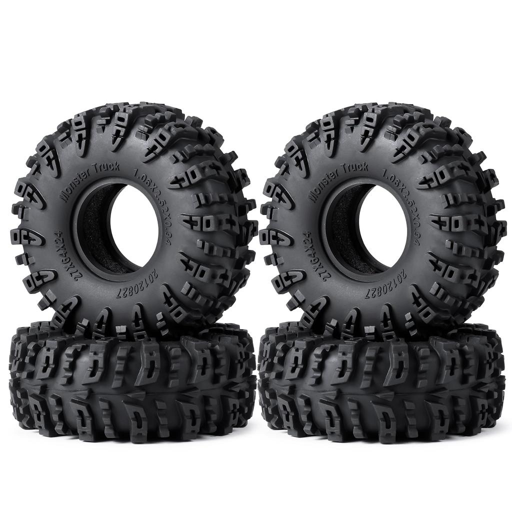TRZX 1/18 Scale Traxxas TRX4-M RC Crawler Car Tires, 4 Pieces, 1.1" Tires, 64mm Rubber Soft Wheels (#A)
