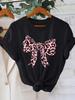 Women'S Casual Crew Neck T-Shirt with Leopard Print Bow 95% Polyester 5% Elastane Regular Length Knit Fabric