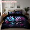 Housse de couette à motif de crâne doré rose violet imprimé 3D Ensemble de literie style gothique Halloween avec taie d'oreiller Housse de couette en polyester