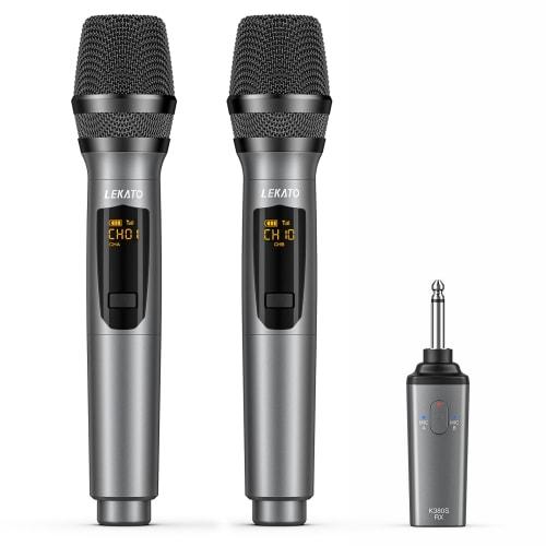 Microphone Dynamique Sans Fil Rechargeable LEKATO, Microphone à Main UHF avec Mini Récepteur, Idéal pour les Réunions, le Karaoké et les Fêtes à Domicile (Lot de 2)