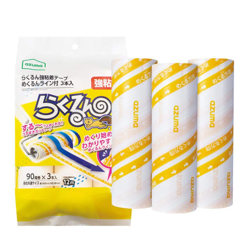Azuma Industries Rakurun Ruban Adhésif Fort avec Lignes de Tournage, 3 Rouleaux, 90 Enroulements, Ruban de Rechange, Lignes Jaunes pour Tournage Facile, Taille Universelle pour Voiture