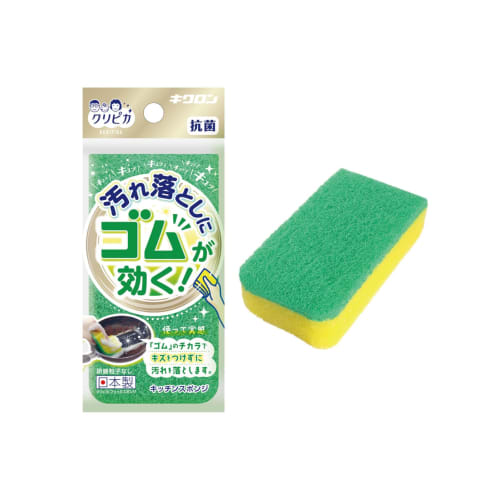 Kikuron Antibacterial Kitchen Sponge, Kuripika Flick Sponge, Green, Made in Japan, 6.5 x 12.4 x 3 cm