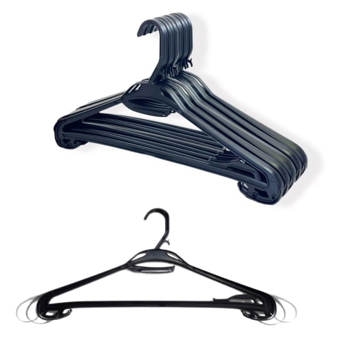 Oritani Commercial Large Hangers, 50cm, Kawalunga, Plastic, Black, Wide, Oversized Silhouette, XXL, Formal Wear, Made in Japan, Slim Fit (Pack of 10)