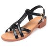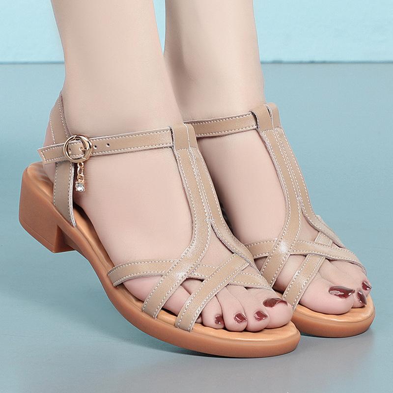 2025 Summer mother sandals low-heeled soft-soled women's sandals new flat leather Roman sandals hollow sandals large size