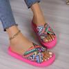 Pantoufles d'été tendance Pantoufles à plateforme imprimées colorées Confortables Antidérapantes Chaussures de plage d'extérieur Chaussures légères pour femmes Sandales