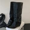 Mode 2025 Nouveau Design Automne Hiver Talons Compensés Plissés Femmes Bottes Hautes au Genou Bout Pointu Bottines Longues Chaussures de Mode pour Dames