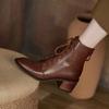 Mode Nouvelles Bottes d'Automne/Hiver en Cuir Fendu pour Femmes Bout Rond Talons Épais Bottes pour Femmes Bottines Zapatos Mujer Dentelle Talons Hauts