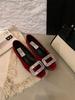 IPPEUM Ballet Flats Rhinestone Shoes For Women 2025 New Square Toe Red Velvet Ballerina Shoes Women