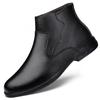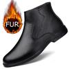 Bottes montantes en cuir pour homme, style Chelsea anglais, à bout rond, en peluche, style business, tendance, hiver, chaussures décontractées en cuir véritable