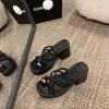 Pantoufles à plateforme d'été cool à talons hauts pour femmes, pantoufles polyvalentes neuves, belles pinces de mode française, talon épais 2025 orteils