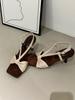 Sandales d'été 2025 pour femmes à bout ouvert carré français, à lanière stiletto avec jupe, élégantes à talons hauts extérieurs