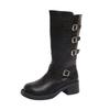Bottes mi-mollet à bout rond automne et hiver nouvelles à talons épais style britannique tempérament polyvalent bottes de mode pour femmes