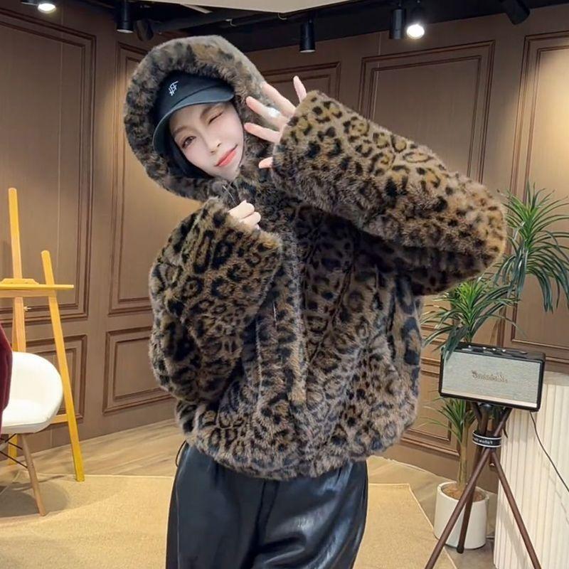 Autumn and winter leopard print new imitation mink hair coat coat loose white light jacket short