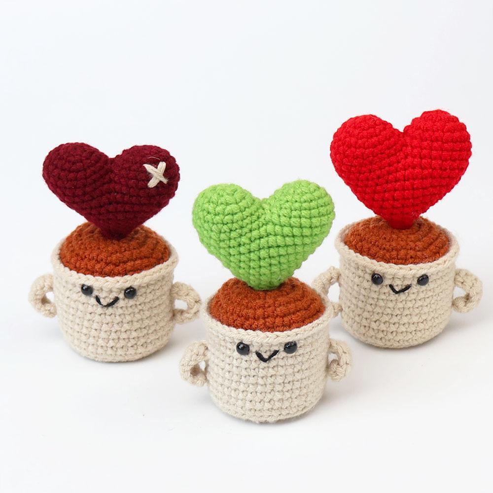 Lovely Heart-shaped Crochet Potted Mini Handwoven Plant Desk Bookshelf Decor Knitting Flowers Gift