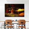 Affiches et imprimés de bouteille de verre de vin, peinture sur toile, images d'art murales pour salle à manger, décoration de maison, raisins, tonneau en bois Cuadros