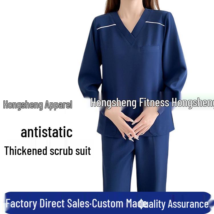 Enhanced Anti-Static Long Sleeve Scrub Suit - Quick-Drying, Stretchable, Medical Gown for Nurses