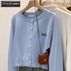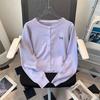 Cardigan Tricoté Violet pour Femme Printemps Brodé Coréen Dopamine Court Veste Pull