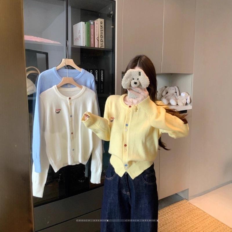 Large size embroidered crew neck soft waxy knitted cardigan women's clothing autumn temperament sweater fat M meat-covering and thin top