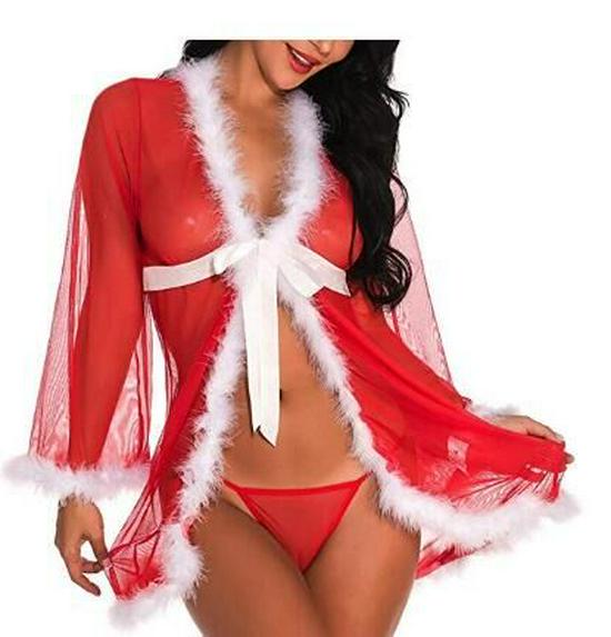 European Style Sexy Christmas Backless Lace-Trim Mesh Nightgown for Women