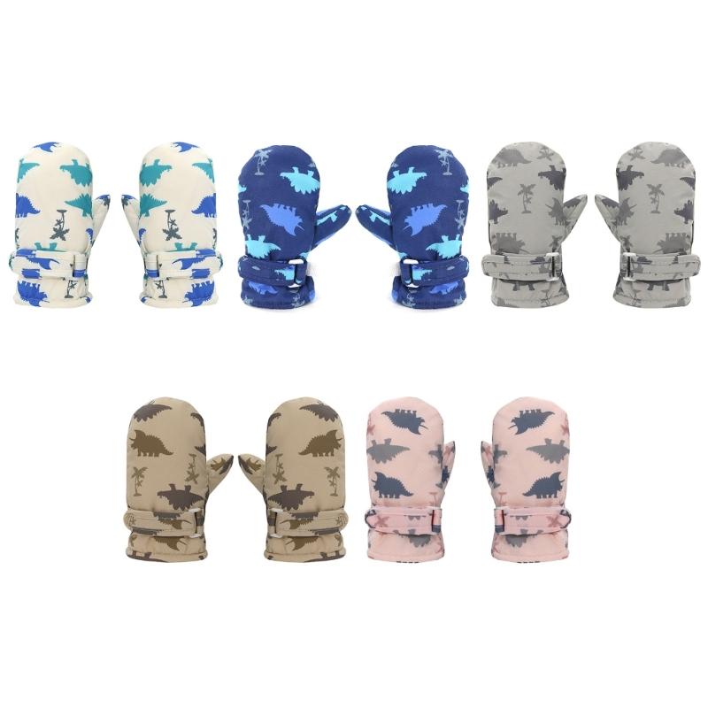 Gants d'hiver pour enfants coupe-vent et imperméables, gants de sport d'extérieur pour enfant, moufles de ski à motif dinosaure de dessin animé, indispensables pour le patinage et la randonnée