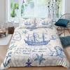 Nautical Duvet Cover Set Boat Pirate Bedding Set King Size Retro Sailboat Brown Comforter Cover Anchor Compass Vintage Quilt Set