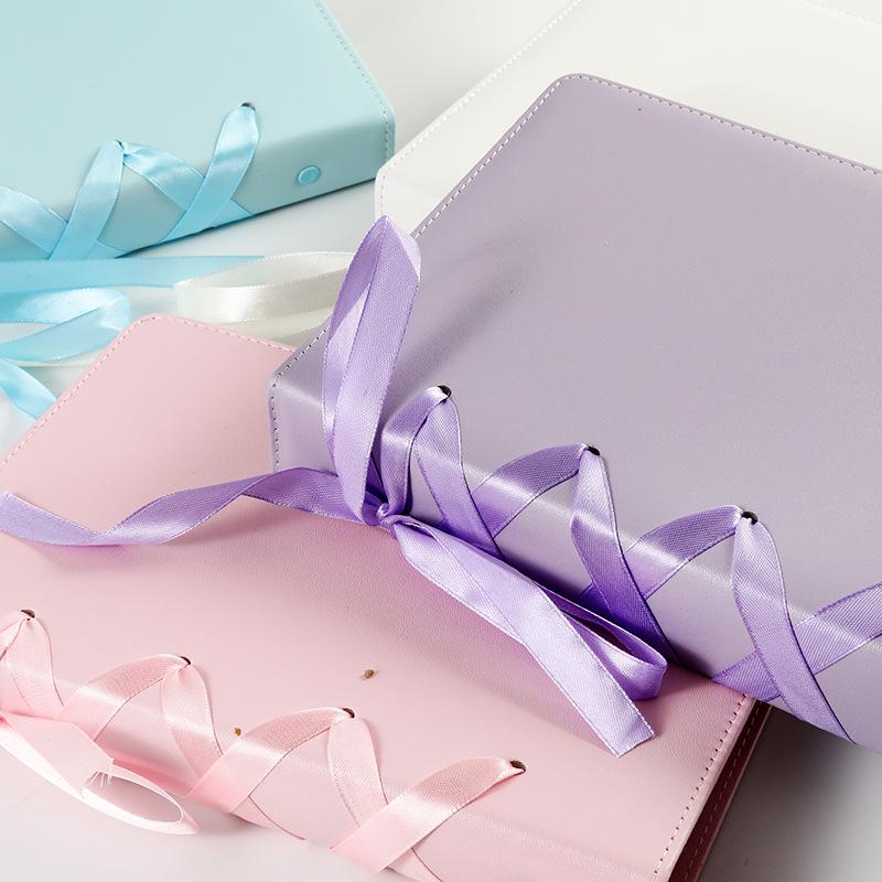 INS Star K-Pop Album Classeur A5 en Cuir PU Livre Photo avec Porte-Cartes Photo Couleur Pure Collection Scrapbooking Décoration Nœud