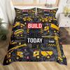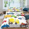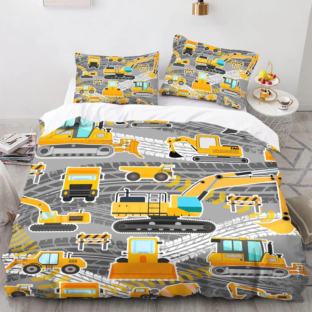 Truck Excavator King Queen Duvet Cover Yellow Tractor Bedding Set For Kids Boys Girls Cartoon Car Transporter 2/3Pcs Quilt Cover