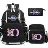 3Pcs/set 26 English Letter K-pop Printed Backpack with Pengcil Case Shoulder Bag for Teenager Girl Boy Bookbag Large Capacity Waterproof Travel Bag