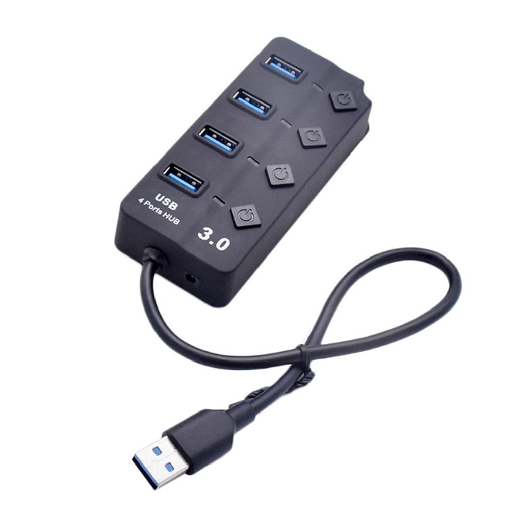 USB 3.0 Hub Splitter 4 Port High Speed Individual On/off Switch AC Power Adapter for Laptop PC