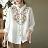 Blouses Pour Femmes Chemise Nationale Chemise Coton Lin Ample Brodé Blouse Revers Manches Longues Cardigan Haut Chemises Féminines