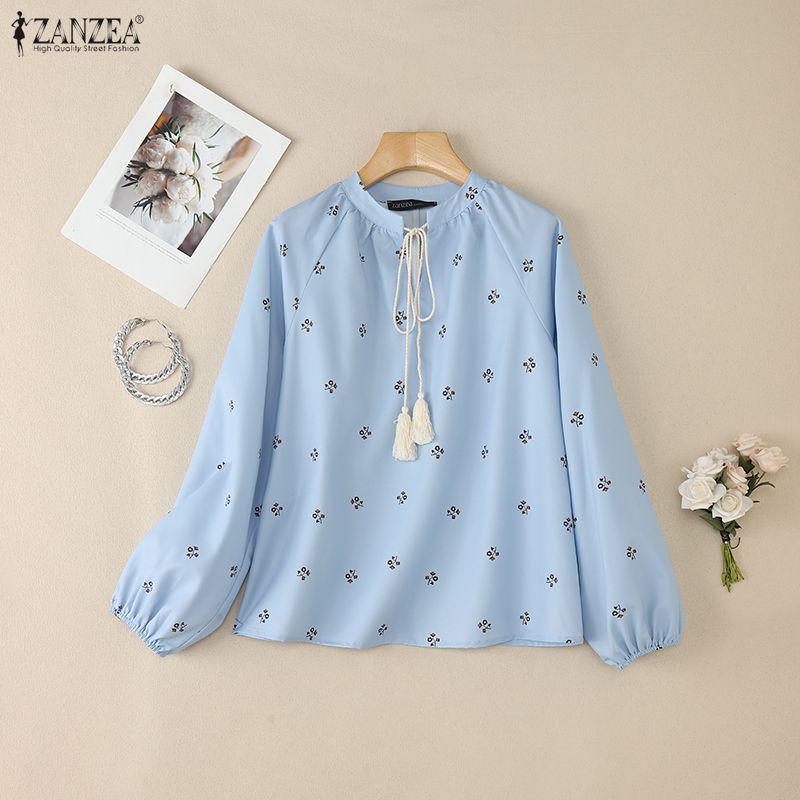 ZANZEA Women Casual Round Neck Floral Print Long Sleeve Blouse