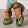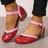 Femmes Vintage Chunky Talons Hauts Mary Chaussures Bout Rond Fermé Bride Boucle Sandales Robe Mary Escarpins