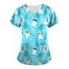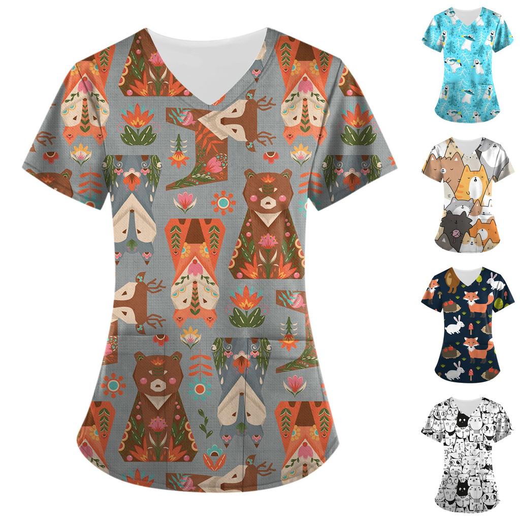 Chemisier imprimé à manches courtes et col en v pour femmes, uniforme de travail, chemisier de poche