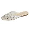 Mode Nouveaux Mocassins Baotou Printemps Tête Carrée Bouche Peu Profonde Couverture Pieds en Maille Pailletée Semelle Souple Antidérapante Résistante à l'Usure Chaussures Plates