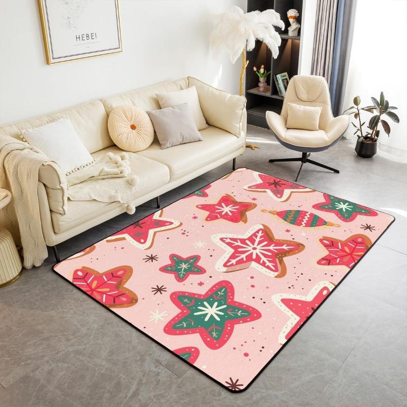 Christmas Decor Carpet Star Snowflake Sugar Pattern Mat Cute Home Decor Non-Slip Rug for Living Room Bedroom Kids Room
