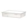 Crafted from plastic, this clear storage box is water resistant and resists deformation and supports heavy items while maintaining space saving structure.