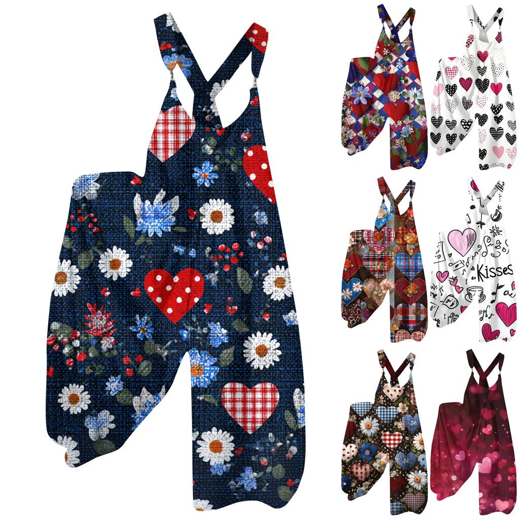 Salopette Imprimé Vintage pour Femme, Bretelles Non Réglables,