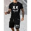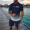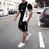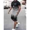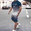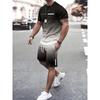 Ensemble Sportif Deux Pièces Imprimé 3D pour Homme T-shirt à Col Rond Couleur Dégradée Hauts à Manches Courtes Shorts Décontractés Fitness