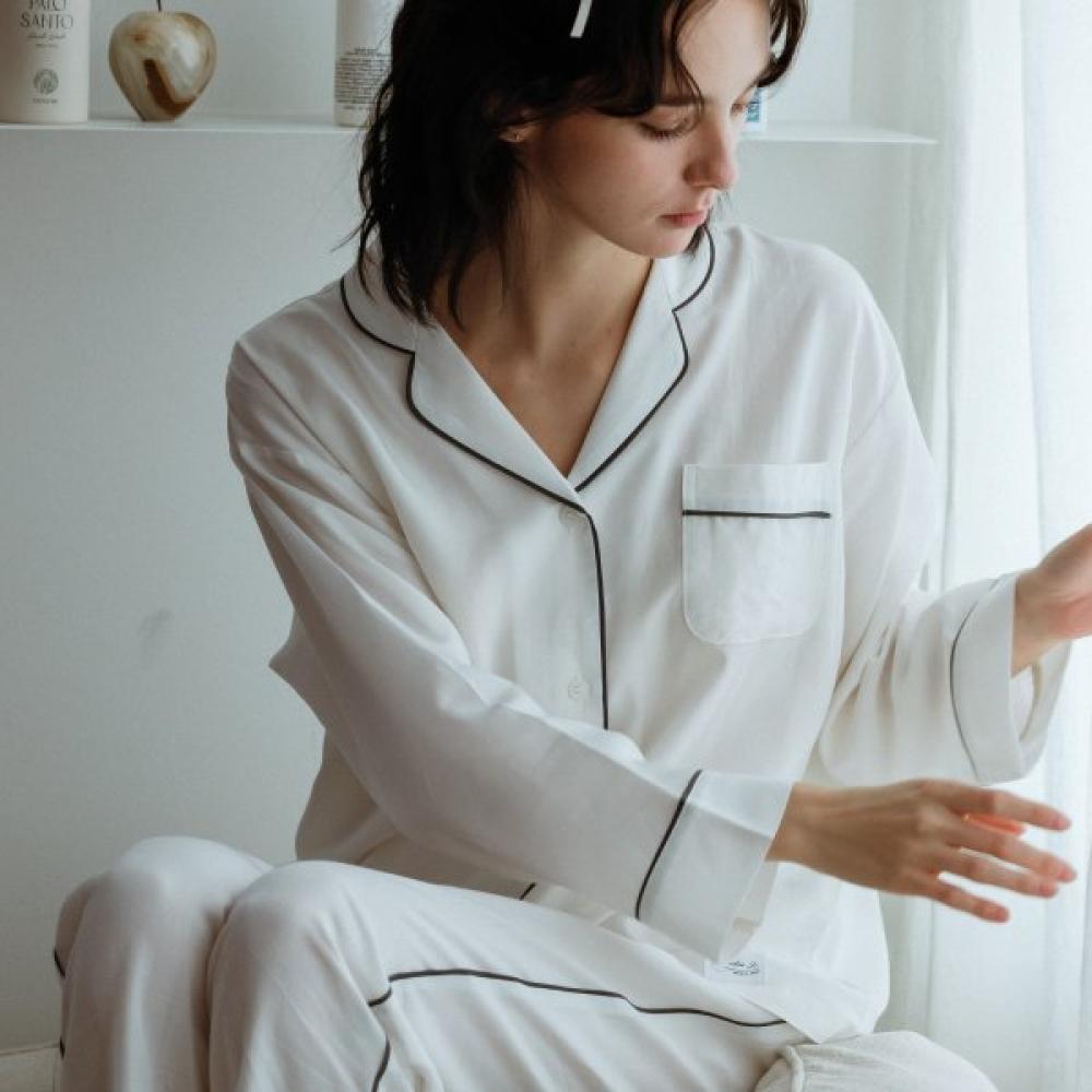 The Frenchel natural-dye modal pajamas (FWPJ903L) are made from soft, breathable micro-modal fabric, keeping you cool in summer and warm in winter. The creamy beige gradient color harmonizes with skin tones.