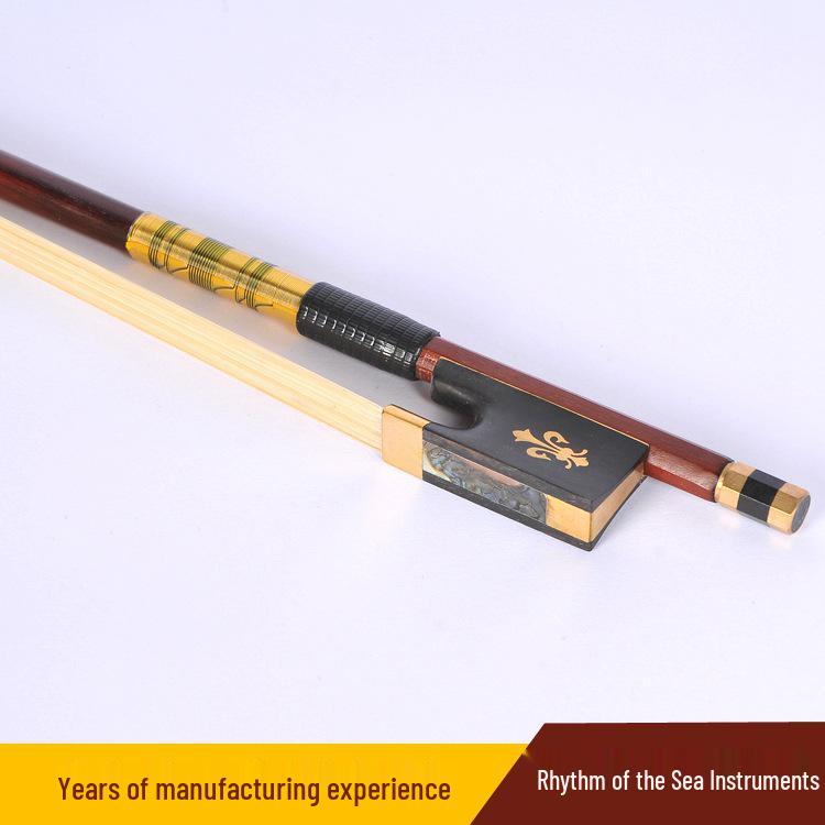 Archet de violon occidental fait main avec fil d'or et bois de santal rouge du Brésil rond