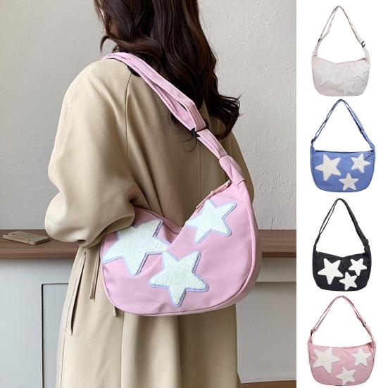 Design Étoilé Élégant à l'Attrait Polyvalent: Doté d'une élégante décoration en étoile à cinq branches sur une toile résistante, ce sac bandoulière allie mode et fonctionnalité.. La silhouette tendance du sac hobo ajoute une touche sophistiquée à n'importe quelle tenue, ce qui en fait un accessoire idéal pour les sorties décontractées ou les occasions plus habillées.. Rehaussez votre style sans effort avec ce design accrocheur.