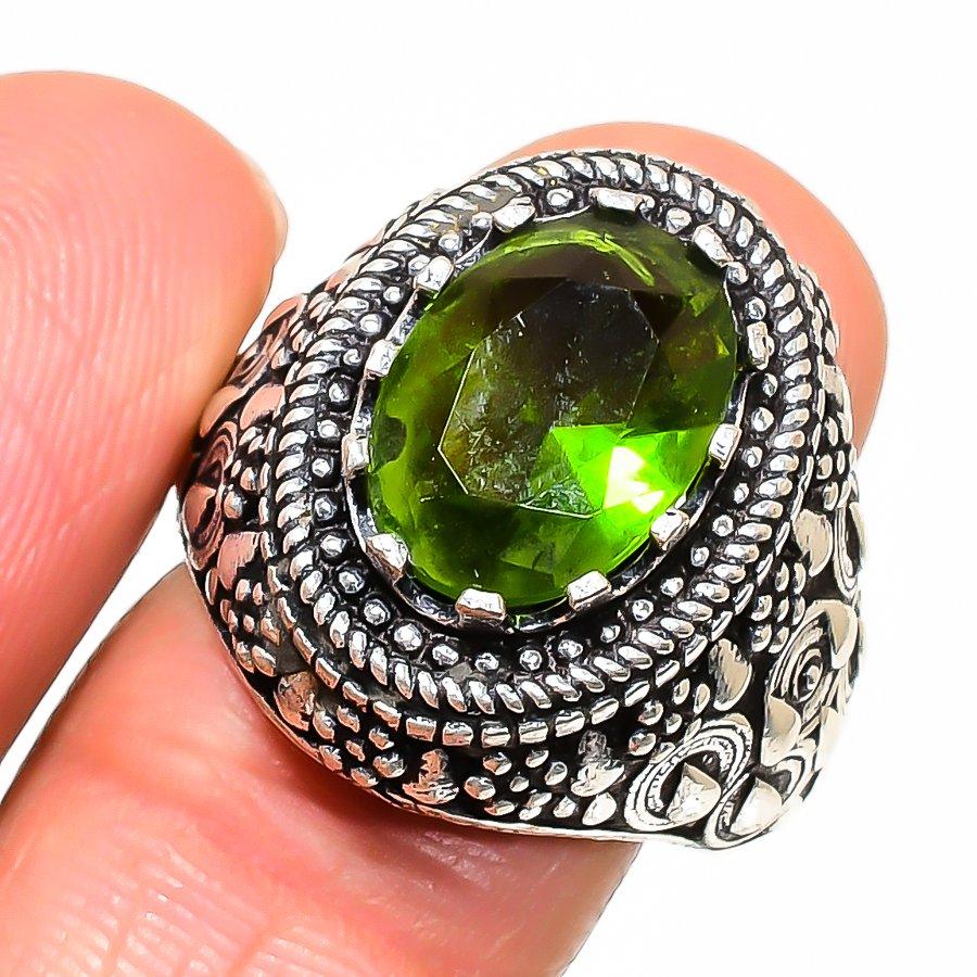 Bague en Argent Sterling 925 Faite à la Main avec Pierre Précieuse Péridot Naturel Taille 9 AR-16731