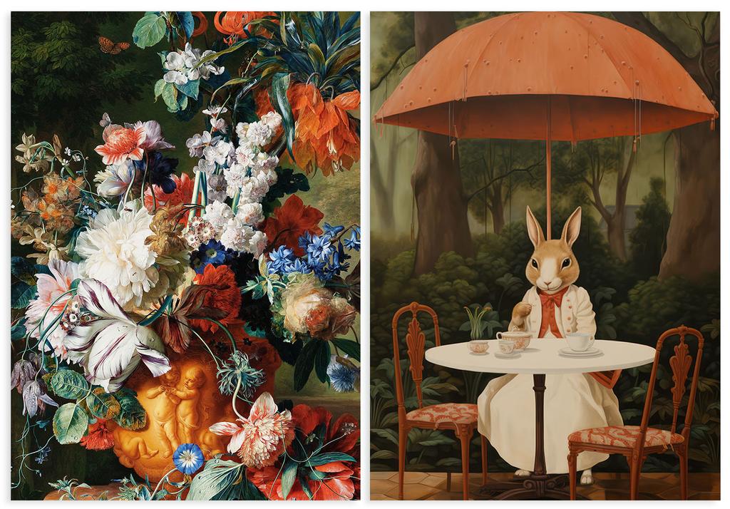 Zestaw dwóch plakatów kwiaty zając